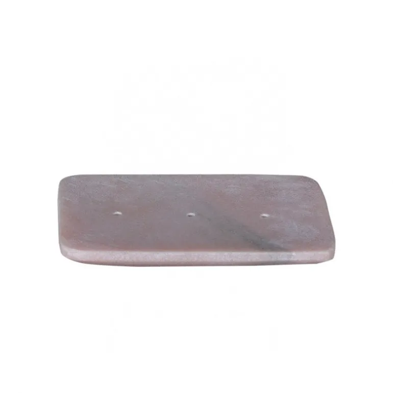 Skøn sæbeskål i rosa marmor med tre borede huller, så vandet kan løbe fra.