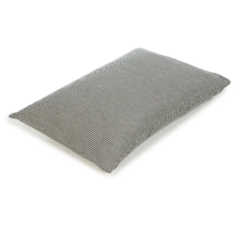 Twill vævet pudebetræk i 100% belgisk hør, med all-over striber i hvid og grønlige (farven hedder River) farver.