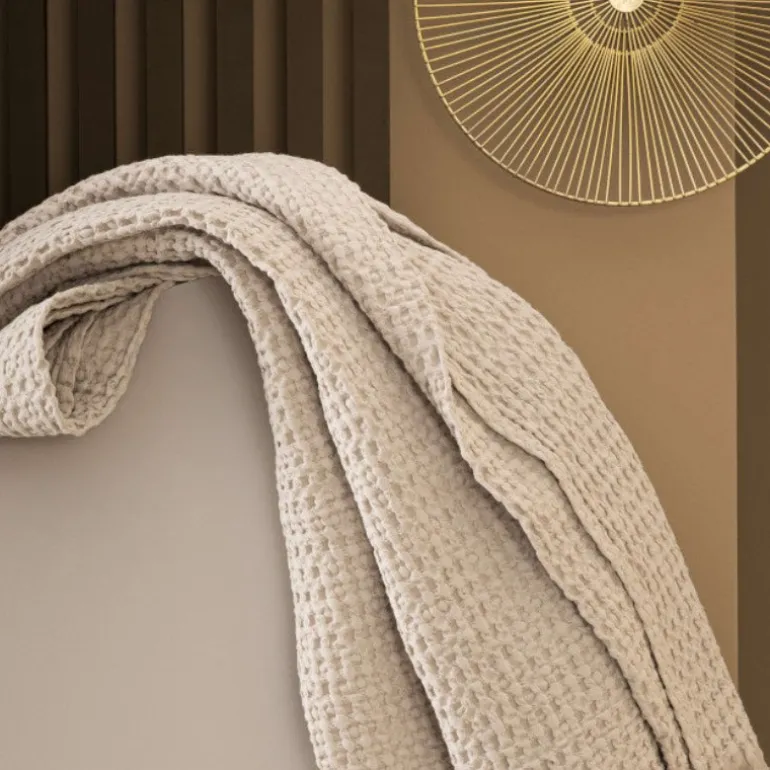 Lækkert sengetæppe i vaflet blød bomuld, i en lækker beige farve. Perfekt til en dobbeltseng.