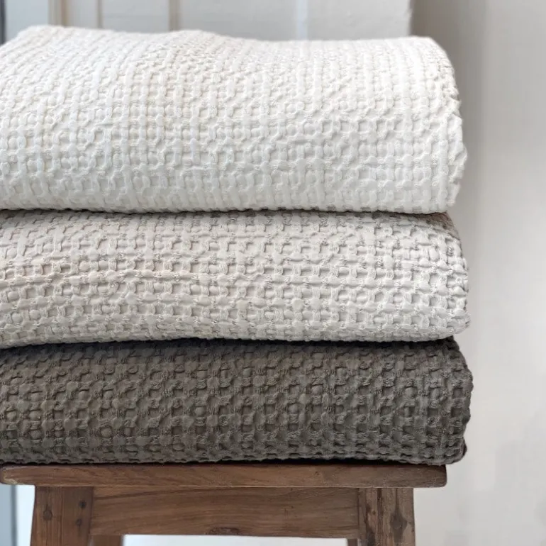 Lækkert sengetæppe i blødt vaflet bomuld, i en lækker brun farve.