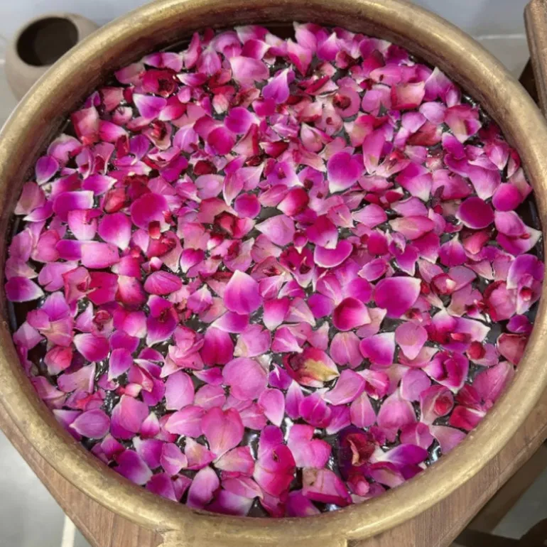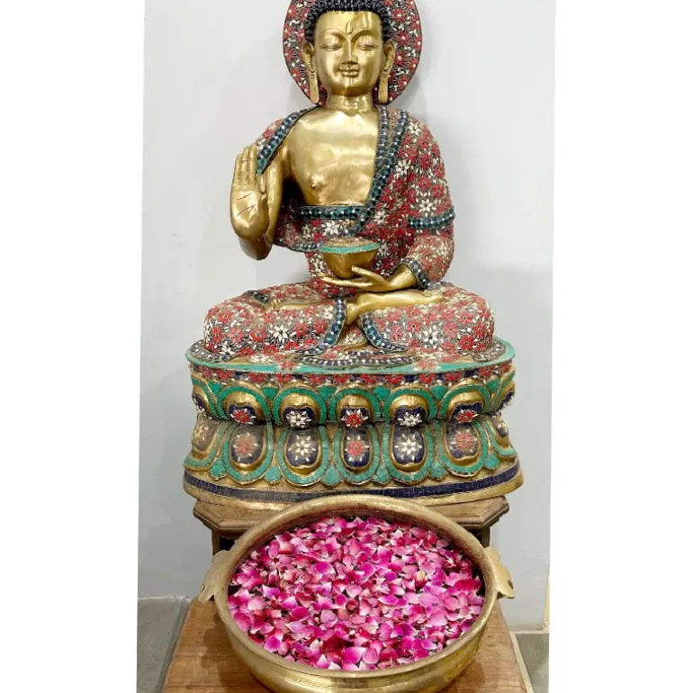 Stort smukt messing Urli fad fra Indien, som oprindeligt er blevet brugt i indiske templer, som vandfad til blomsterblade og flydelys. Messingfadet er en flot dekoration til hjemmet.