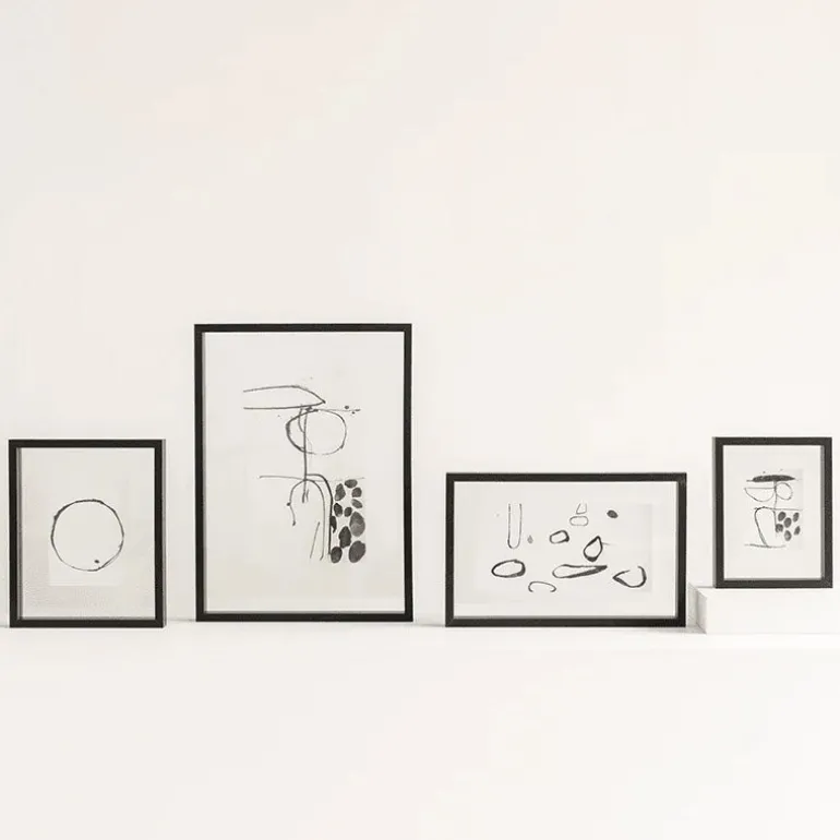 Hvis du elsker det, så indram det. Et yndlingspostkort, et billede du altid vil værdsætte, eller det nye, abstrakte stykke sort stregkunst, der er inkluderet i rammen. Svævende billedrammeminimalisme i sort farve, fremhæver det du elsker, hvor som helst du sætter det. Den perfekte housewarming-gave – til dig, din egen eller en du holder af.