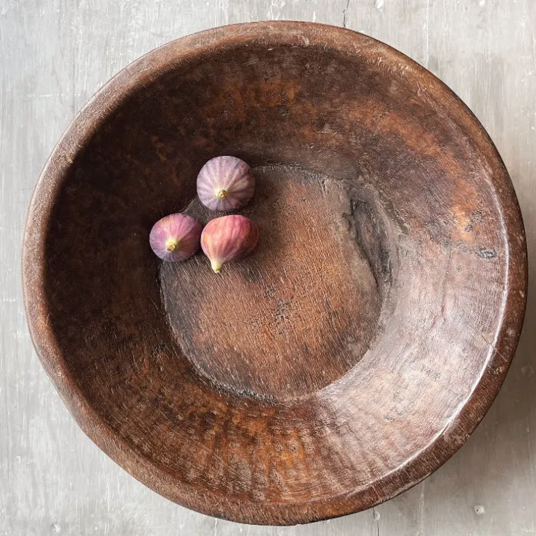 Rå træ fade til frugt, brød eller dekoration. Træ fadene er oprindeligt brugt i det indiske køkken. Vi anbefaler at man ikke anvender våde varer i fadene og at de bliver vasket op i hånden og aftørret med det samme.