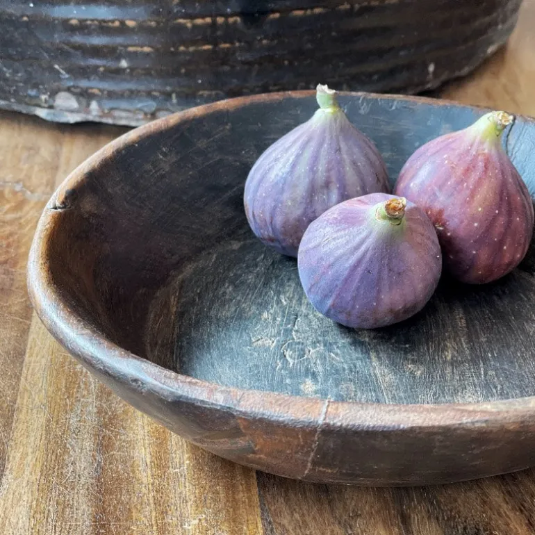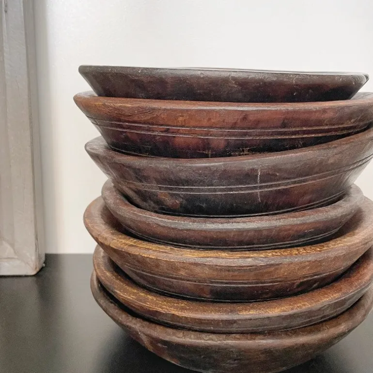Smukke håndskåret træskåle fra Indien. Charmerende som evt. frugtskål eller brødkurv.