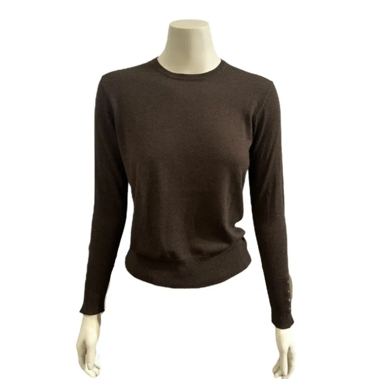 Strik bluse med rund hals og guldnitter på ærmet. Denne fine tynde strik er perfekt under en strikbluse, cardigan eller jakke. Blusen findes i 5 farver.