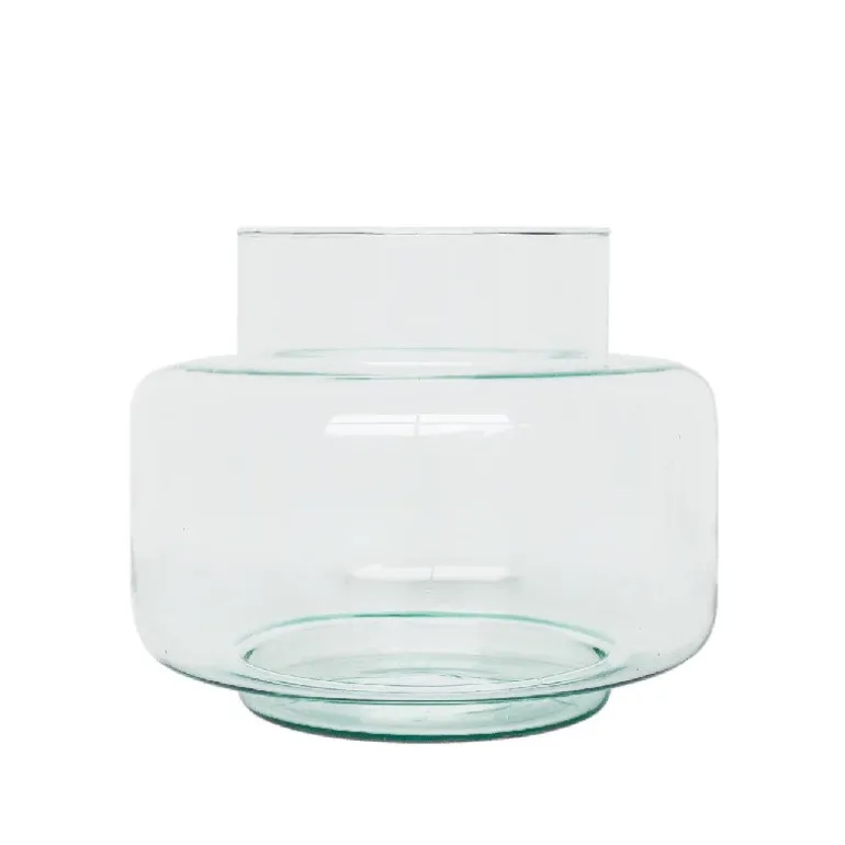 Skøn glasvase i genbrugsglas. Glasrester samles, smeltes og får en ny chance, for at blive forvandlet til denne smukke vase. Genbrugsglasset giver vasen det lidt grønlige skær i glasset.