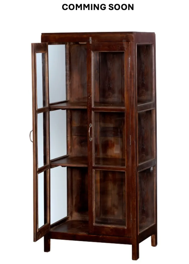 Dette fine vitrineskab med glaslåger er et gammelt unika skab, der er restaureret. Skabet har tre hylder hvis man tæller bunden med. Skabet er som skabt til opbevaring af alt fra porcelæn til linned, bøger eller dit hjemmekontor.