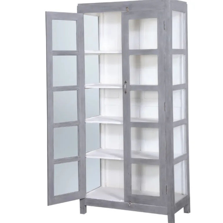 Dette fine vitrineskab med glas låger er et gammelt unika skab, der er restaureret. Skabet har fem hylder. Skabet er som skabt til opbevaring af alt fra porcelæn til linned, bøger eller dit hjemmekontor.
