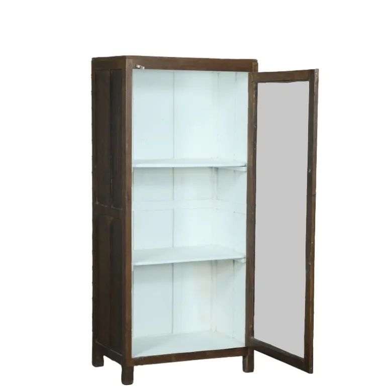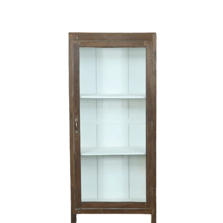 Dette fine vitrineskab med glaslåger er et gammelt unika skab, der er restaureret.Skabet har tre hylder, hvis man tælle bunden med.