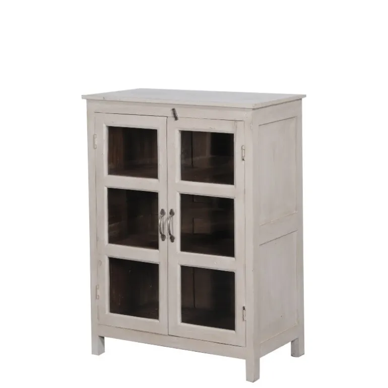 Dette fine vitrineskab med glas låger er et gammelt unika skab, der er restaureret. Skabet har tre hylder hvis man tæller bunden med. Skabet er som skabt til opbevaring af alt fra porcelæn til linned, bøger eller dit hjemmekontor.