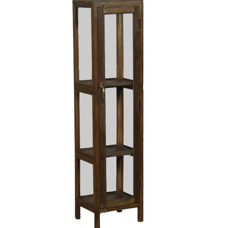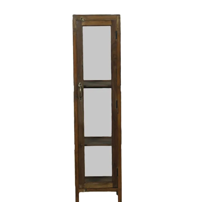 Dette vitrineskab er et gammelt unika skab, der er restaureret. Skabet har tre hylder, hvis man tælle bunden med.